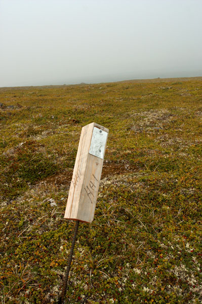 Though I’ve left the boundaries of the potential Pebble Mine, I haven’t left mining behind me. Claim stakes like this one dot the tundra, reminding me that as large as it would be, the Pebble Mine project would still be only a very small piece of the enormous Bristol Bay mining district. |